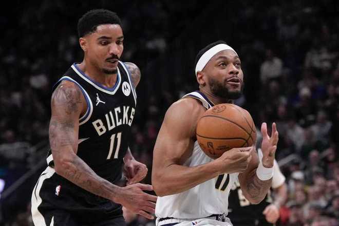 北京时间1月24日,NBA常规赛掘金客场对阵雄鹿,其中掘金是背靠背第二场,掘金多达7位球员缺席,戈登右腿筋拉伤退赛。超级残阵掘金持续压制雄鹿,并在末节开局扩大23分领先优势,字母哥率领雄鹿持续反扑一度追到仅差2分,但字母哥最后时刻脚部不适被换下场伤退,最终掘金102-100赛季双杀险胜雄鹿收获2连胜,雄鹿遭遇2连败,且雄鹿最近8场只有2胜6负战绩。